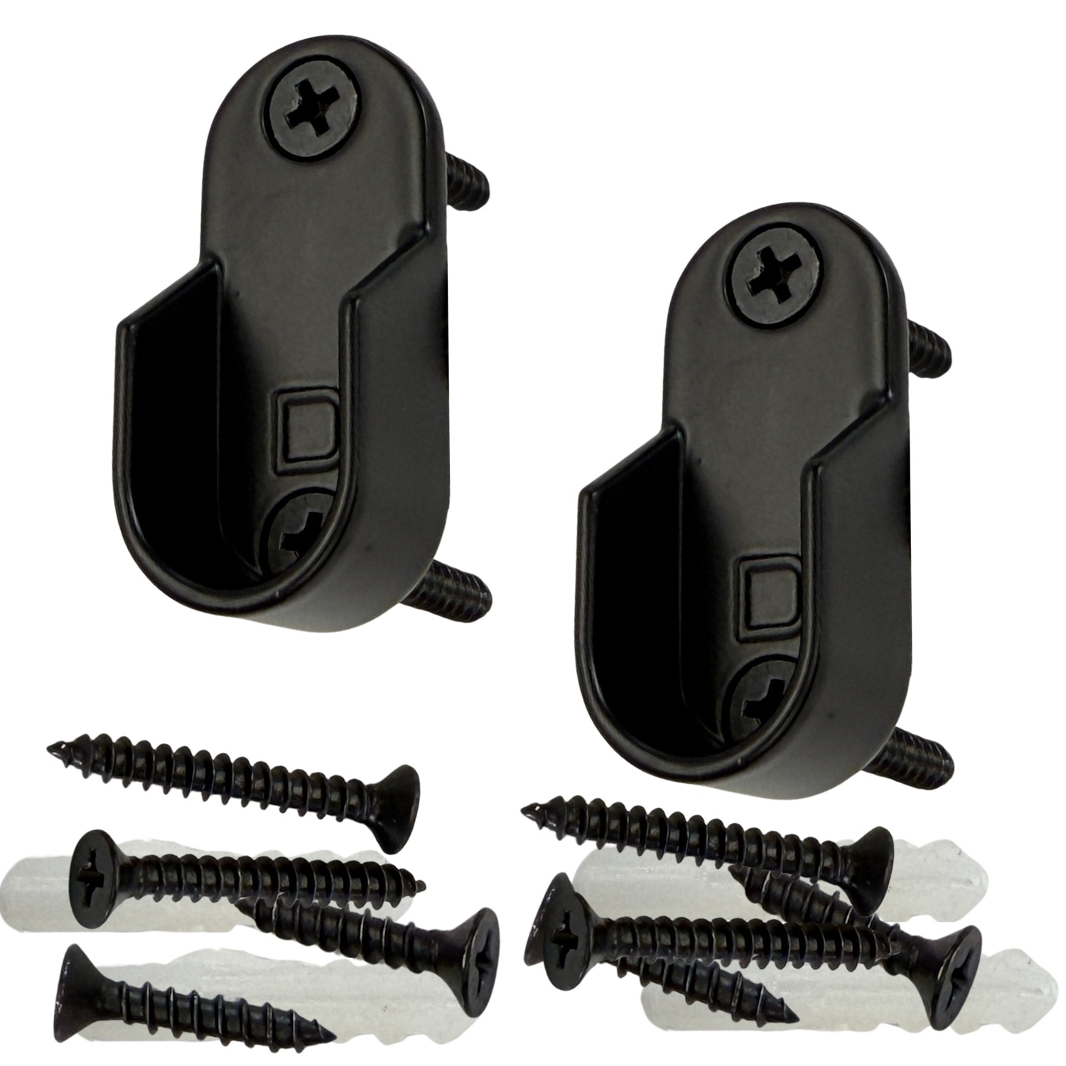 Black End Brackets | Screw-On Type | 15mm x 30mm Oval Closet Rod | 1 Pair