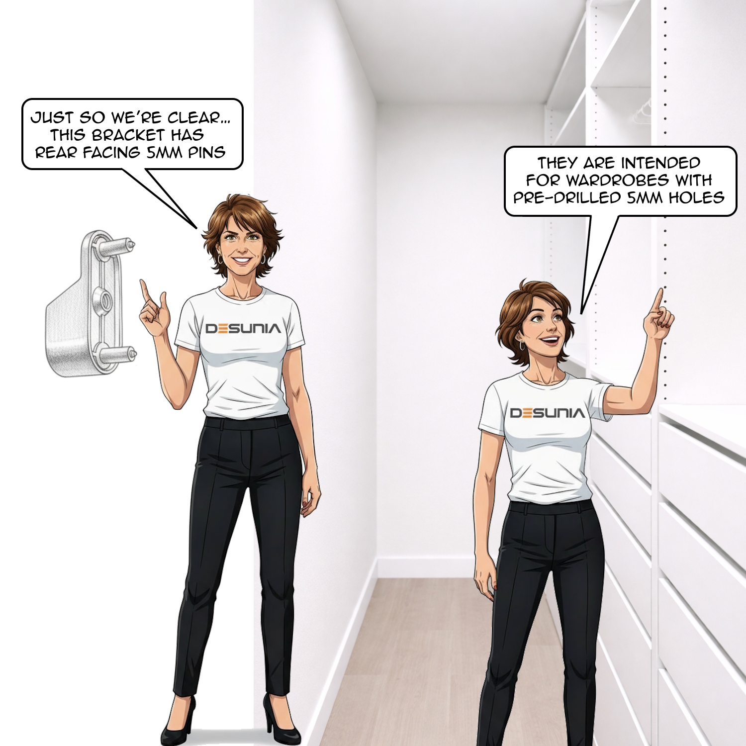 These brackets are designed to work with standard 5mm hole patterns commonly found in closet organizers and wardrobe systems.