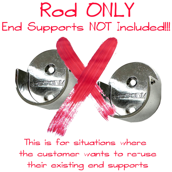 First, this assumes that you're happy with your existing end supports and just need a rod. No Problem! Just enter the measurements for the size rod you want and we'll take care of everything!