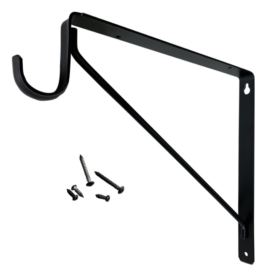 The moment you hold it in your hand, you'll know what we're talking about. The parts of the bracket that lies against the wall and supports the shelf each measure 1" wide and is a robust 1/8" thick. They are connected and strengthened by a diagonal metal rod that's 1/4" diameter that is WELDED in place! Here's another great feature, the steel at the hook is pressed into a strength-enhancing profile, that adds a touch of refinement to the bracket at the same time. Nice!