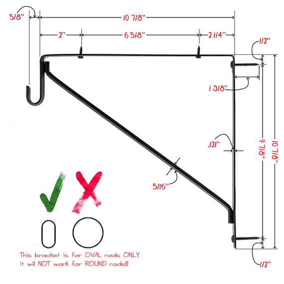 Fixed Closet Shelf Bracket for Oval Rod - Black