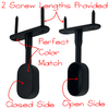 For standard overhead shelves, use the shorter screws, but if you're going into something a little meatier, use the longer ones. Naturally, they match the finish of the hangers perfectly!
