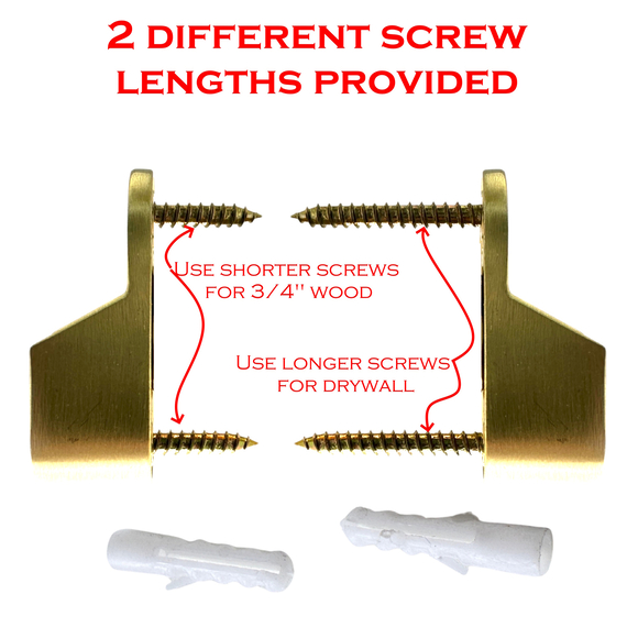 Unlike our "rear-facing pin" type end supports, these supports have "flat backs", so you can install them over virtually any surface. We really went overboard with the screws department too, because we provide 2 different lengths. If you're going into a wood panel (and are concerned about the tip of the screw popping out the other side), use the short ones. For all other applications, use the longer ones. Got sheetrock? Yeah... we've got you covered there too! Just use the provided hollow wall anchors! Once the brackets are installed, just cut your oval rods to length, and you'll be hanging up clothes in no time flat!