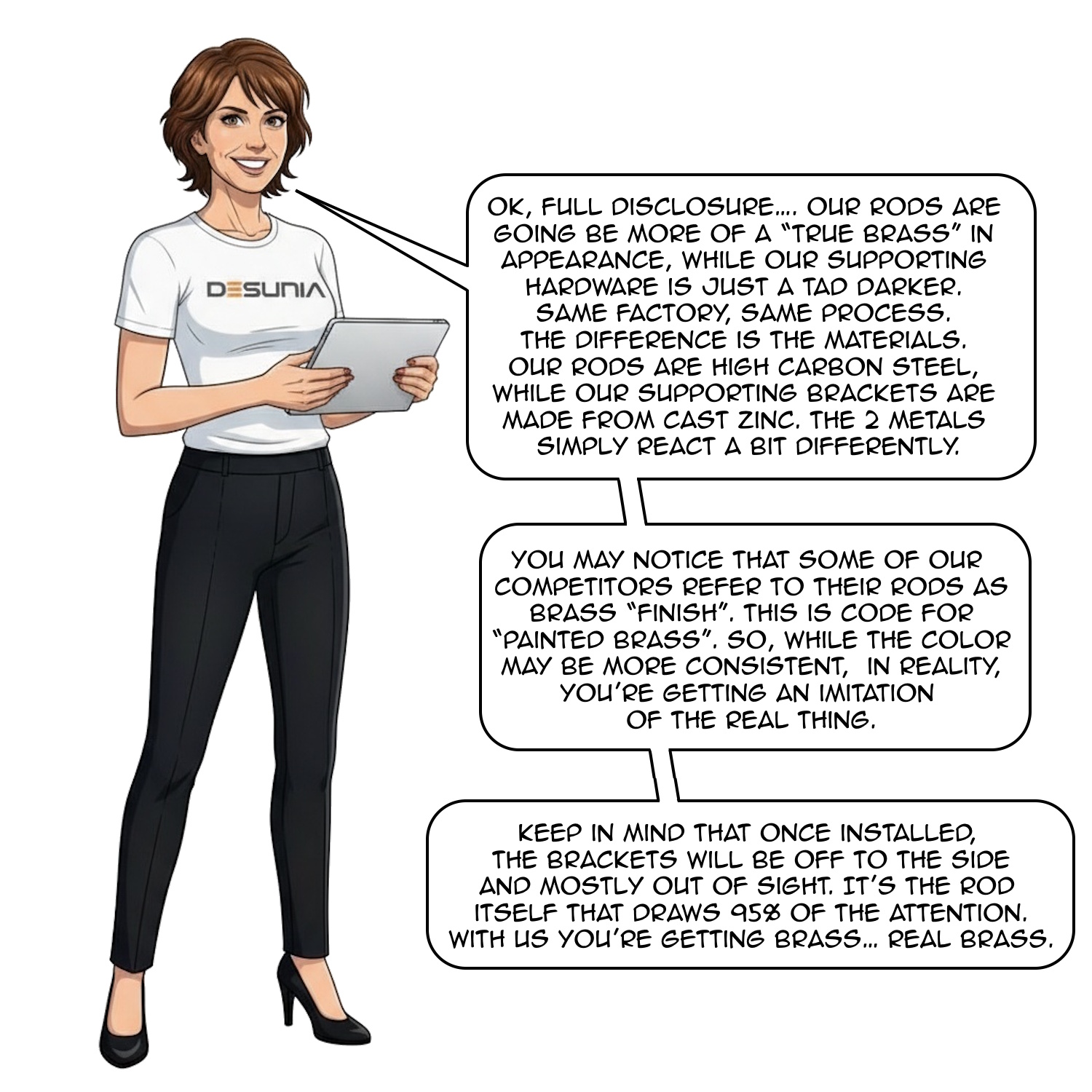 The result is a rich, understated finish that adds warmth without being overly bright—and matches seamlessly with our rods and other components for a cohesive look throughout your space.